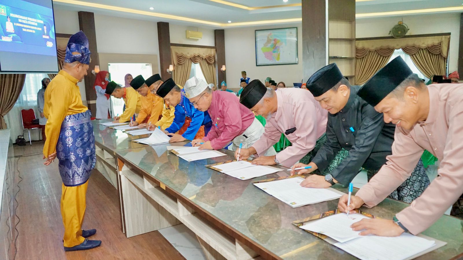 Penandatanganan perjanjian kinerja dan Pakta Integritas diikuti 3 staf ahli, 3 asisten, inspektur.