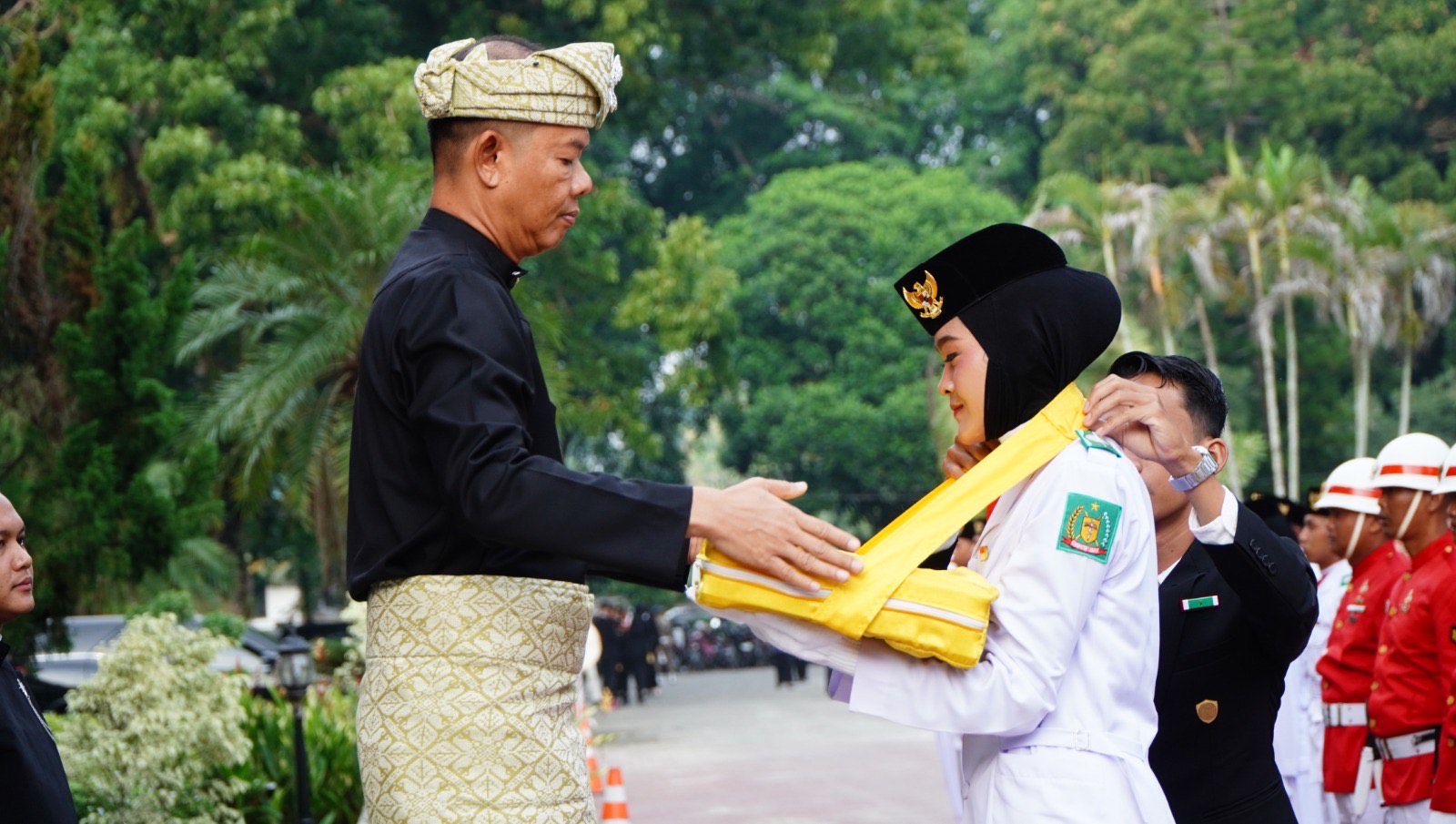 Tepat pukul 07.00 WIB, Sekretaris Daerah Kabupaten Langkat, H. Amril, S.Sos, M.AP, menyerahkan duplikat bendera pusaka merah putih kepada Pasukan Pengibar Bendera (Paskibra) Kabupaten Langkat. Prosesi ini berlangsung khidmat di halaman Kantor Bupati Langkat, Minggu (17/8/2025).