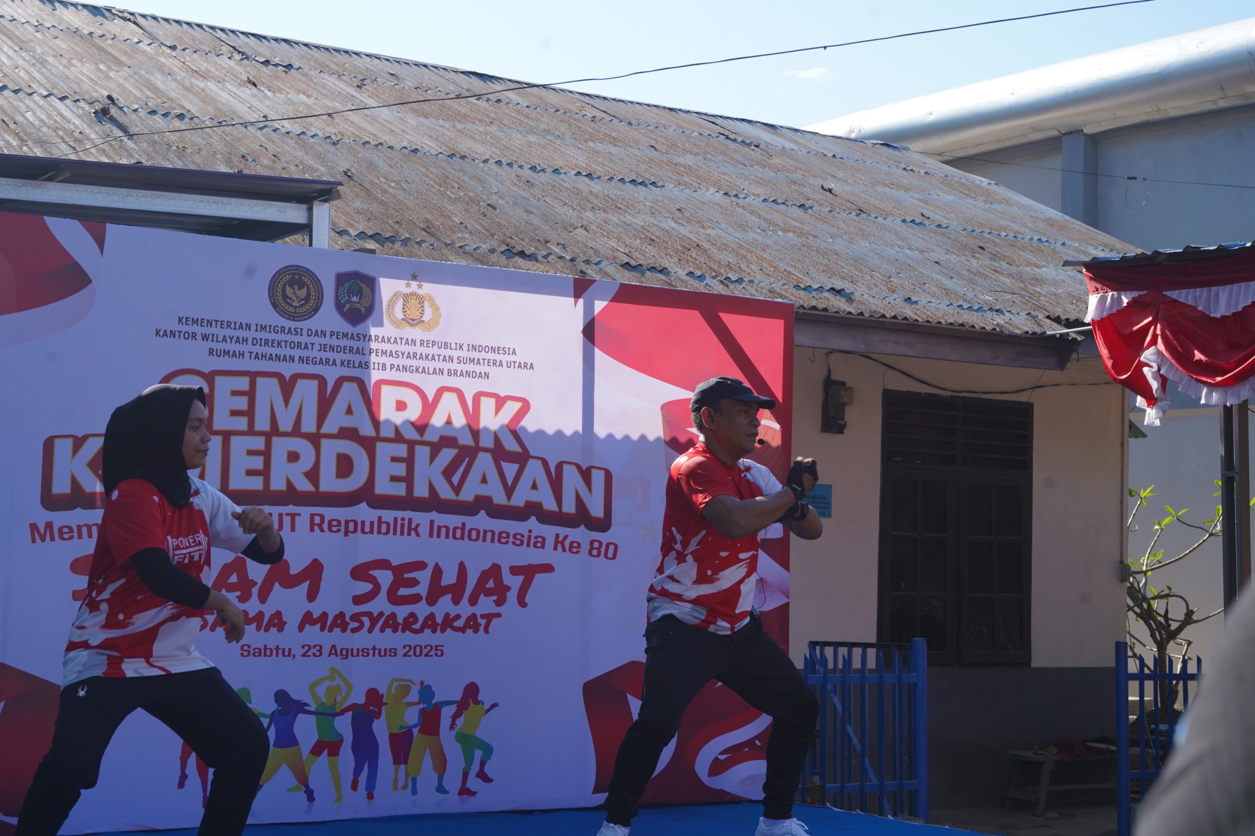 Rumah Tahanan Negara (Rutan) Kelas IIB Pangkalan Brandan menggelar kegiatan senam sehat bersama masyarakat dalam rangka memeriahkan Hari Kemerdekaan, Sabtu, 23 Agustus 2025. Acara ini sekaligus dirangkaikan dengan layanan pemeriksaan kesehatan gratis bagi warga sekitar.