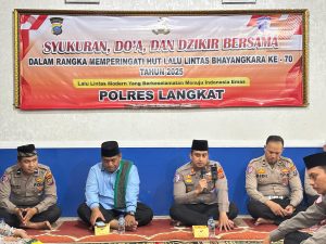 Satuan Lalu Lintas (Satlantas) Polres Langkat menggelar do’a bersama dalam rangka memperingati Hari Ulang Tahun (HUT) Lalu Lintas Bhayangkara ke-70, Rabu (17/9/2025).