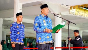 Bupati Langkat H. Syah Afandin, SH memimpin upacara bendera peringatan Hari Sumpah Pemuda ke-97 Tahun 2025 yang berlangsung di Alun-alun Tengku Amir Hamzah Stabat, Selasa (28/10/2025).