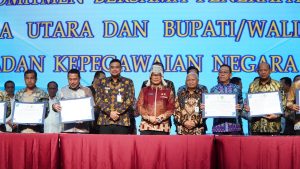 Sebagai bentuk dukungan penuh, Bupati dan Wali Kota se-Sumatera Utara yang hadir melakukan penandatanganan komitmen penerapan manajemen talenta bersama Kepala BKN RI.