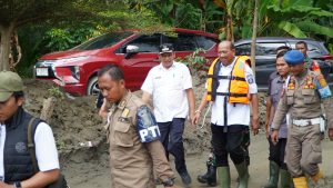 Bupati Langkat H. Syah Afandin, SH kembali menunjukkan komitmennya dalam penanganan banjir dengan turun langsung menemui warga yang terisolir. Rabu (3/12/2025) sore, ia mendatangi Desa Pantai Cermin, Kecamatan Tanjung Pura, meski akses jalan menuju lokasi masih terputus akibat banjir yang belum surut.